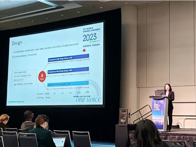 医院临床试验中心主任李姝雅汇报了由王拥军教授牵头的瑞替普酶(Reteplase,r-PA)与阿替普酶(Alteplase)治疗急性缺血性卒中的安全性和有效性:2期随机、开放标签、盲终点、对照试验研究结果公布。r-PA是一种价格更实惠、半衰期较长的新一代溶栓剂。