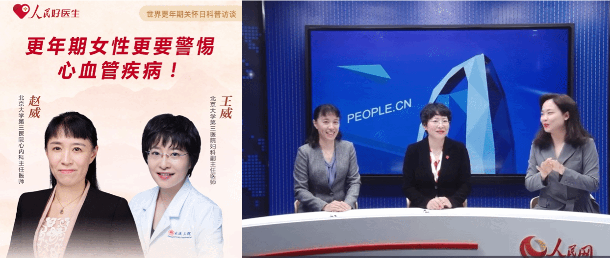 18日,妇科王威副主任医师和心血管内科赵威主任医师在人民网进行了“更年期女性更要警惕心血管疾病”的健康科普访谈。两位专家分别从专业角度出发,深入浅出地介绍了女性如何在更年期这段特殊时期抓住预防心血管疾病的契机,做好自己的心血管健康做好健康规划。