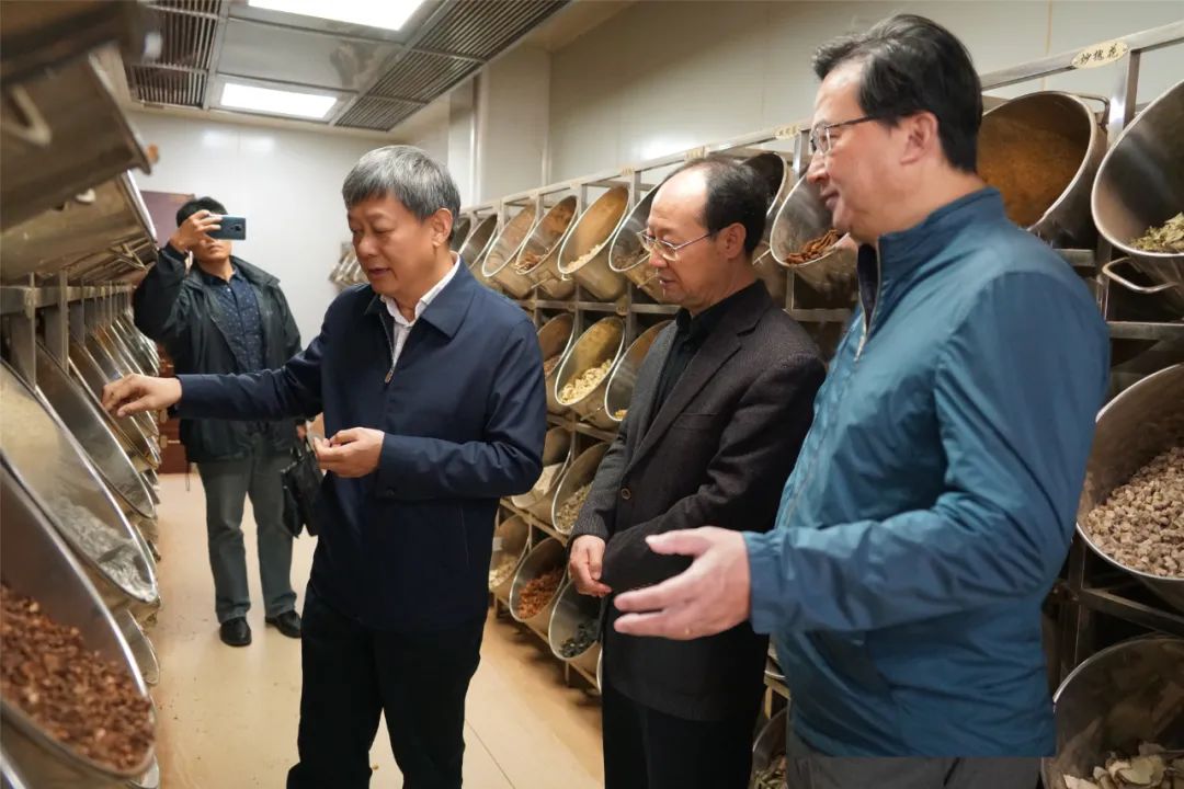 调研组一行走访明医馆,了解北京中医医院名老中医药专家传承谱系及中医诊疗特色。在门诊智能化代煎药房,刘清泉向调研组介绍了医院智能化、现代化煎药室饮片调剂、中药煎煮以及发药的全流程。徐春军陪同参观。