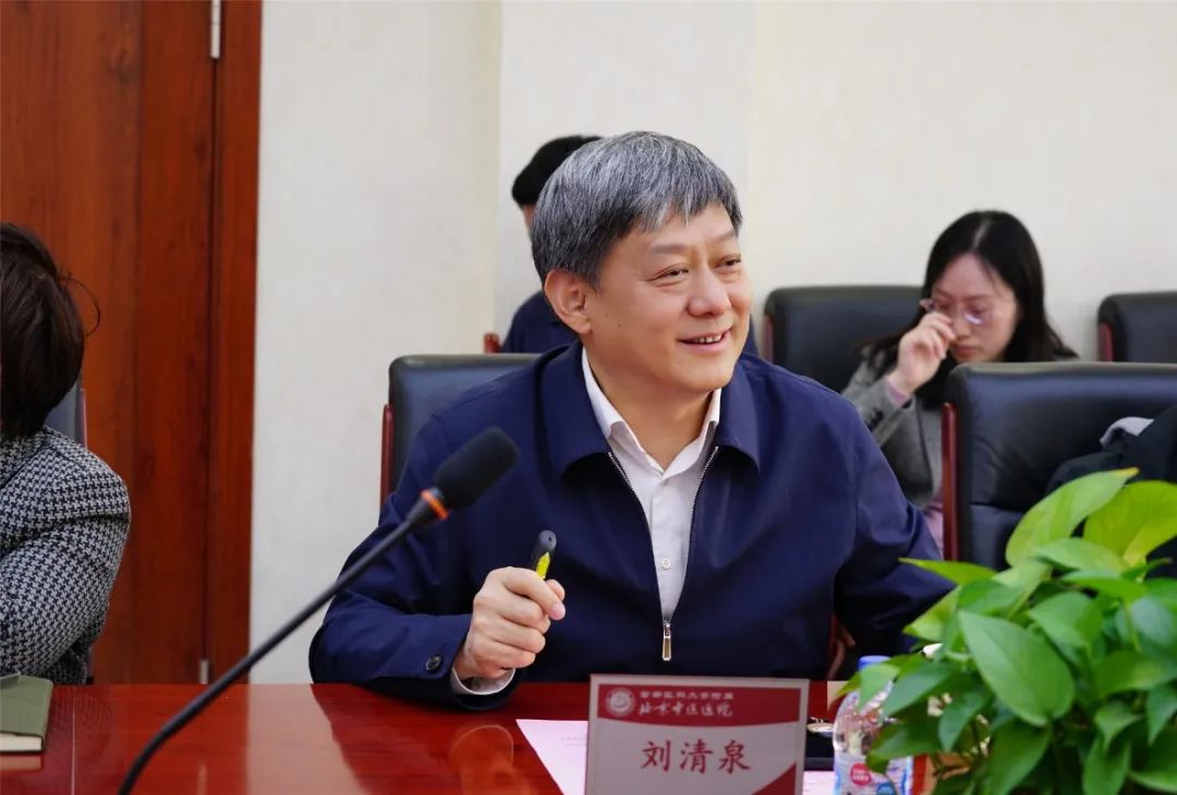 刘清泉对调研组入院考察表示热烈欢迎。从建院历史、传承发展、医疗特色、科研成果、教学人才培养情况等方面进行了介绍。表示医院始终高度重视中医学学科建设和人才培养工作,秉承“仁术勤和”的院训,注重加强专科能力建设、提升医务人员技术水平、提高医院科学管理水平,不断探索创新,争取为人类健康福祉做出更大贡献。