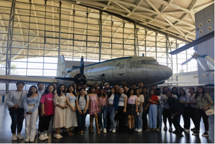 中国民航博物馆是中国民用航空局主办的民用航空专题博物馆。博物馆总占地面积189600平方米,总建筑面积21980平方米。其中主体建筑15924平方米,是德国OWP公司按照飞机发动机形状设计的外观独具一格的现代建筑。学生们通过专业讲解员按照时间线分阶段的详细介绍,了解了中国民用航空事业伴随着新中国成长的历程日益发展壮大,在国家社会主义现代化建设和对外开放工作中发挥着越来越大的作用,建国70多年来,走过了一条光辉的发展历程。中国民航的发展得益于国家实施改革开放的政策、民航职工多年来的辛勤耕耘和努力奋斗、更为重要的是得到了党中央、国务院和中央军委的英明领导,这是留给我们的一笔宝贵的物质与精神财富。2002年12月27日,中国民用航空总局决心建设一座世界一流的民用航空博物馆。博物馆于2012年开展,建设和藏品征集工作得到社会各界的广泛参与和大力支持,并征集到大量藏品及飞机实物,镇馆之宝就是毛泽东主席乘坐过的专机,这架伊尔-14运输机,飞机号为B-4208,飞机长21.31米、宽31.7米、高7.8米,有两台活塞8甲发动机,续航能力为8小时10分钟,客舱内设置了17个座椅、一张矮床、一张沙发和一个办公桌,客舱前隔板右侧悬挂毛泽东主席在本飞机上的照片一张,当时在中央专机团服役。2001年南航河南分公司在不改变飞机原有结构和标志的前提下,对这架飞机重新组装、修缮,给飞机装上了铝铂动翼后,作为文物保存起来。留学生们一听是毛主席曾经乘坐过的专机都争先恐后的登机参观拍照留念,从他们的脸上洋溢的灿烂笑容可以看出是多么的荣幸多么的自豪与骄傲!