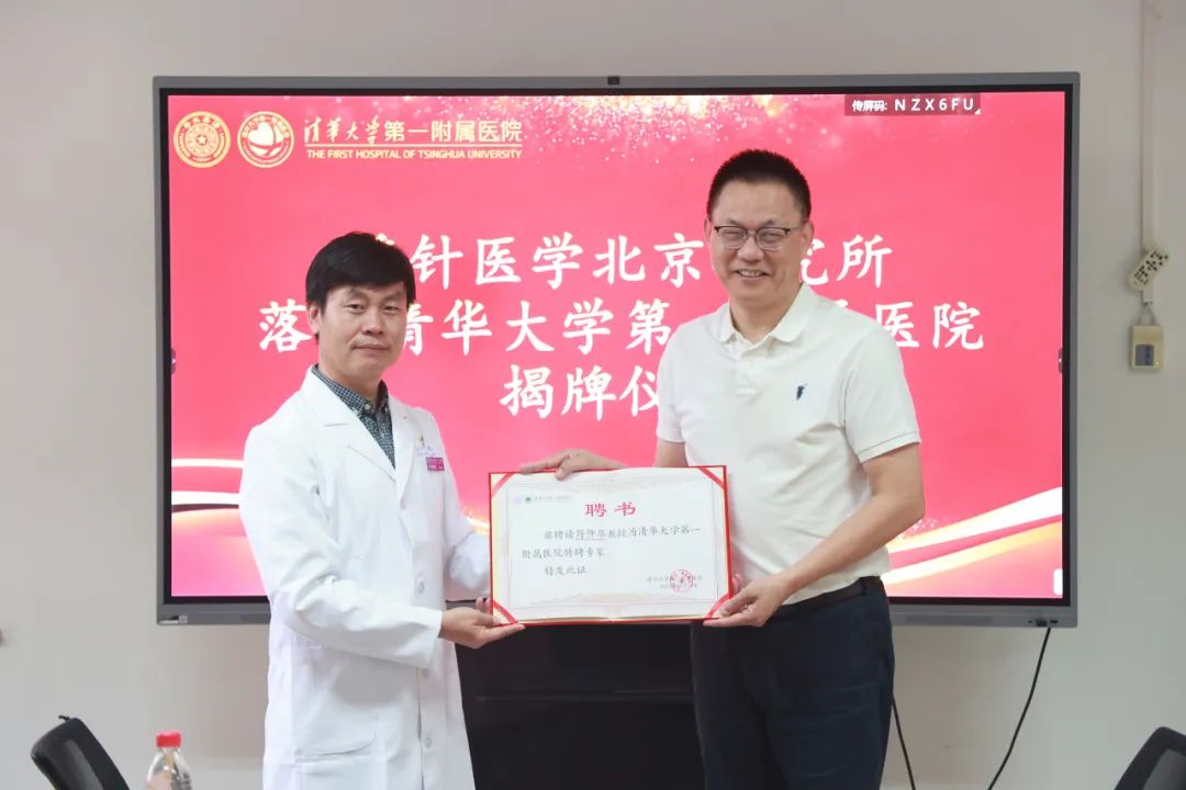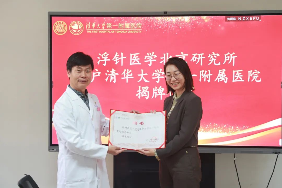 随后,举行了隆重的浮针医学北京研究所揭牌仪式。徐明星为符仲华颁发特聘专家证书,为吴凤芝、甘秀伦颁发指导专家证书。