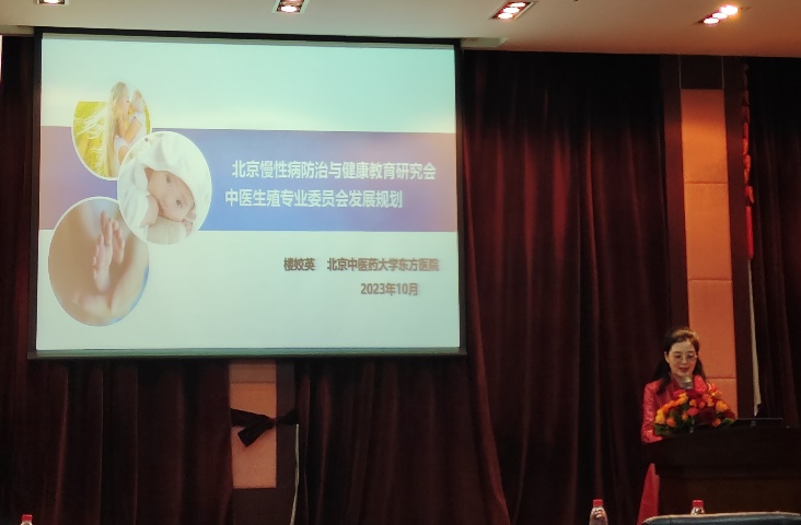 筹备组组长楼姣英教授从成立背景、发展宗旨、前期筹备工作情况及过程等几方面对专委会的成立进行了报告。任延刚副会长代表研究会向北京慢性病防治与健康教育研究会中医生殖专业委员会的成立表示热烈祝贺,宣读了《关于同意北京慢性病防治与健康教育研究会中医生殖专业委员会的批复》,并为北京慢性病防治与健康教育研究会中医生殖专业委员会颁发铜牌,为第一届委员会委员颁发证书,其中东方医院金哲教授为名誉主任委员,东方医院楼姣英教授为主任委员,东方医院贡欣教授为常务委员兼秘书长。随后,北京慢性病防治与健康教育研究会中医生殖专业委员会主任委员楼姣英教授为大会做工作计划介绍。
