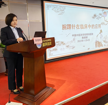 中国中医科学院眼科医院手术麻醉科护士长陈媛媛授课题目为《腕踝针在临床中的应用》,陈护士长结合真实案例对腕踝针的技术理论、操作方法,不良反应及处理方法等方面进行了深入浅出的讲解,使大家充分认识到腕踝针疗法的特殊疗效,能快速解决临床患者的痛症,满足广大人民群众对中医药服务的需求,为人民健康提供坚实的保障。同时也体现了中医非药物疗法简、便、廉的优势。