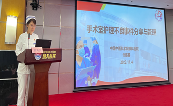 中国中医科学院眼科医院护理部副主任付海英授课题目为《手术室不良事件分享与管理》,付主任通过对发生在手术室不良事件的真实案例、原因分析及防范措施进行详细讲解,希望我们护理同仁能引以为戒,吸取其中经验教训,避免护理不良事件的发生。