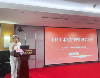 2023年11月4日,由中国中医科学院眼科医院主办的2023年北京市级继续教育项目《眼科手术室护理管理学习班》在中国中医科学院眼科医院三楼报告厅进行,来自北京市近10家医疗机构的护理人员360余人参加此次会议。会议由中国中医科学院眼科医院护理部副主任付海英主持。