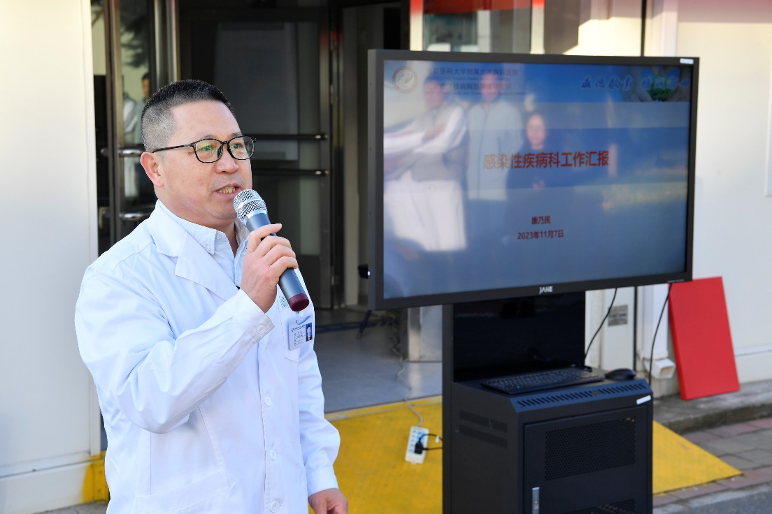 感染性疾病科负责人康乃民介绍了科室试运营情况,科室的诊疗范围以胸部感染性疾病为主,包括胸腹腔积液、胸部感染性疾病、全身感染性疾病、不明原因发热、新冠病毒感染等疾病的临床诊治。门诊以发热门诊为主,病房主要为不明原因发热患者,呼吸道为主的感染性疾病及全身感染性疾病患者提供住院诊疗。此外,还承担呼吸道传染性疾病的筛查和感染性疾病的治疗。