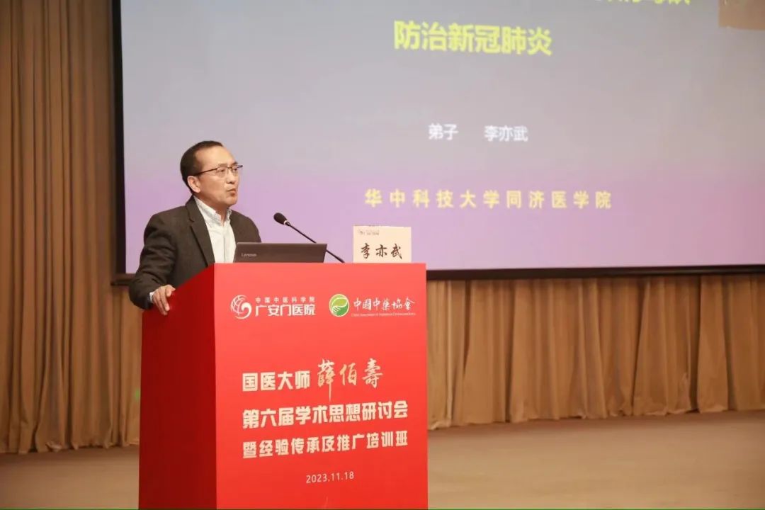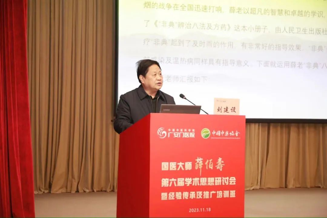 王笑频书记在致辞中回顾了薛老从援非治疗艾滋病,到抗击非典、战疫新冠,背负苍生、垂范率先的光辉事迹;总结了薛老从医六十甲子,为中医药事业传承创新,为广安门医院高质量发展发挥的重要贡献;高度赞扬了薛老在临床、教学中做出的卓越成就。希望与会学员不负大师期望,担当起时代重任,为推动中医药事业守正创新发展做出应有贡献。