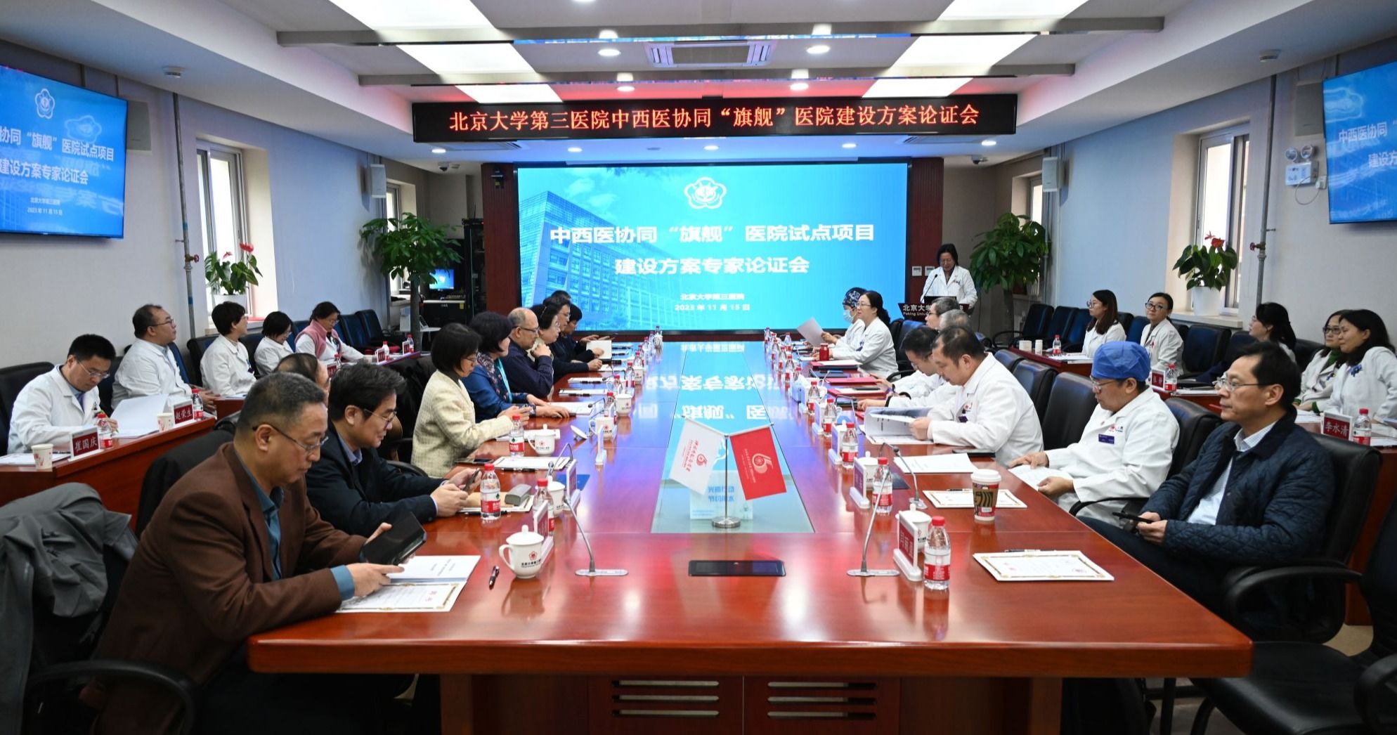 2023年11月15日,北京大学第三医院举办中西医协同“旗舰”医院试点项目建设方案论证会。来自中医药医疗、科研、管理和中西医结合领域资深院外专家,医院党政领导、临床科室、职能处室等负责人、专家出席会议,会议由副院长李蓉主持。