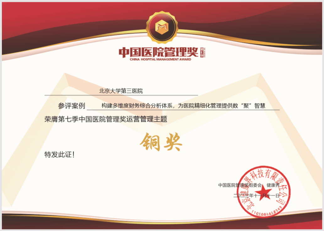 2023年11月10日至12日,以“宽见与高驰”为主题的2023年中国医院管理年会在海南海口举行。北京大学第三医院牵头制定的《手术室精益管理共识》在大会上发布;北京大学第三医院作为标杆医院代表承办了主题为“揭秘北京大学第三医院高质量发展路径”专场论坛;药剂科、财务处的项目分别荣获第七季中国医院管理奖全国药学管理主题银奖、运营管理主题铜奖。