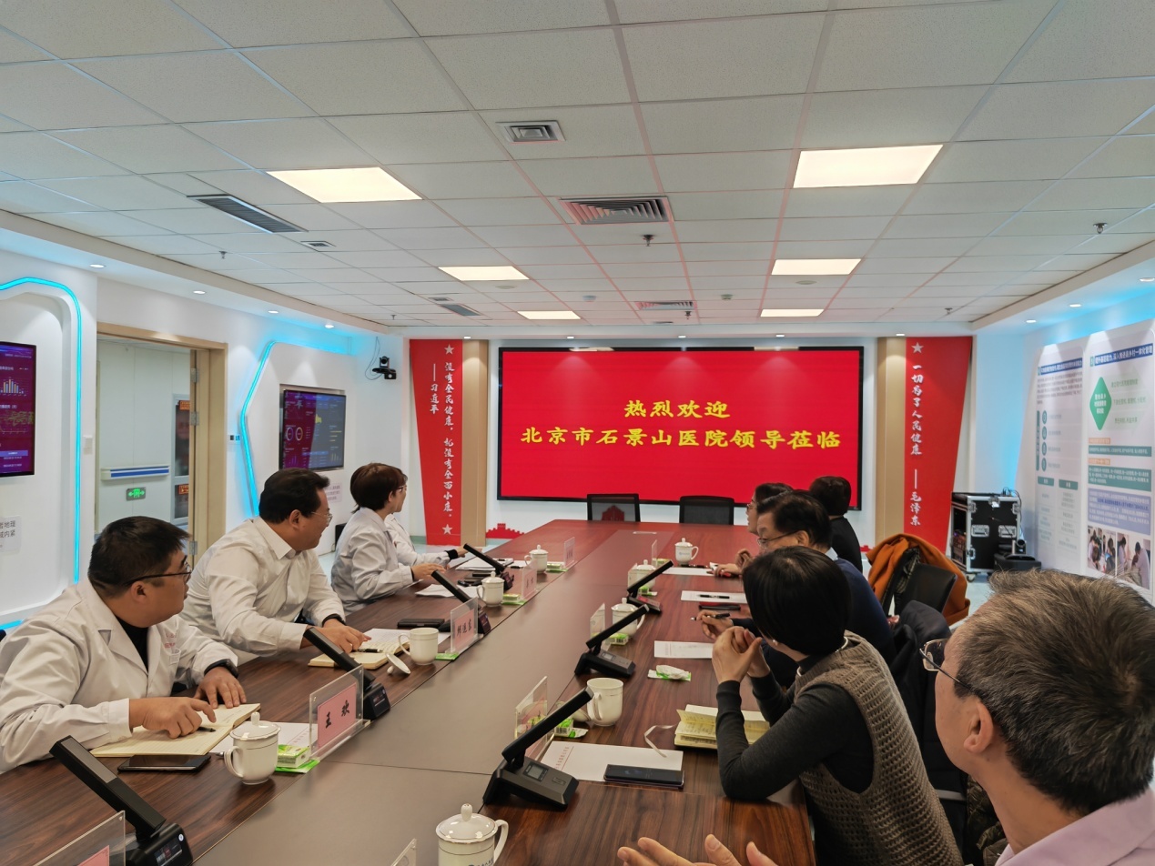 李哲清副院长介绍了石景山医院是石景山区区域医疗中心、医联体核心医院、首都医科大学教学医院、北京市老年友善医院和母婴友好医院,是集医、教、研、防于一体的三级综合医院。建院36年来,秉持“仁爱厚德、大医精诚”的院训,坚持不懈,孜孜以求,以严谨的医疗作风、精湛的医疗技术和严格的科学管理,形成以卒中中心、胸痛中心、创伤中心、北京儿童医院石景山诊疗中心、放疗中心、康复中心等为重点的“5+N”多学科发展模式的特色医院。