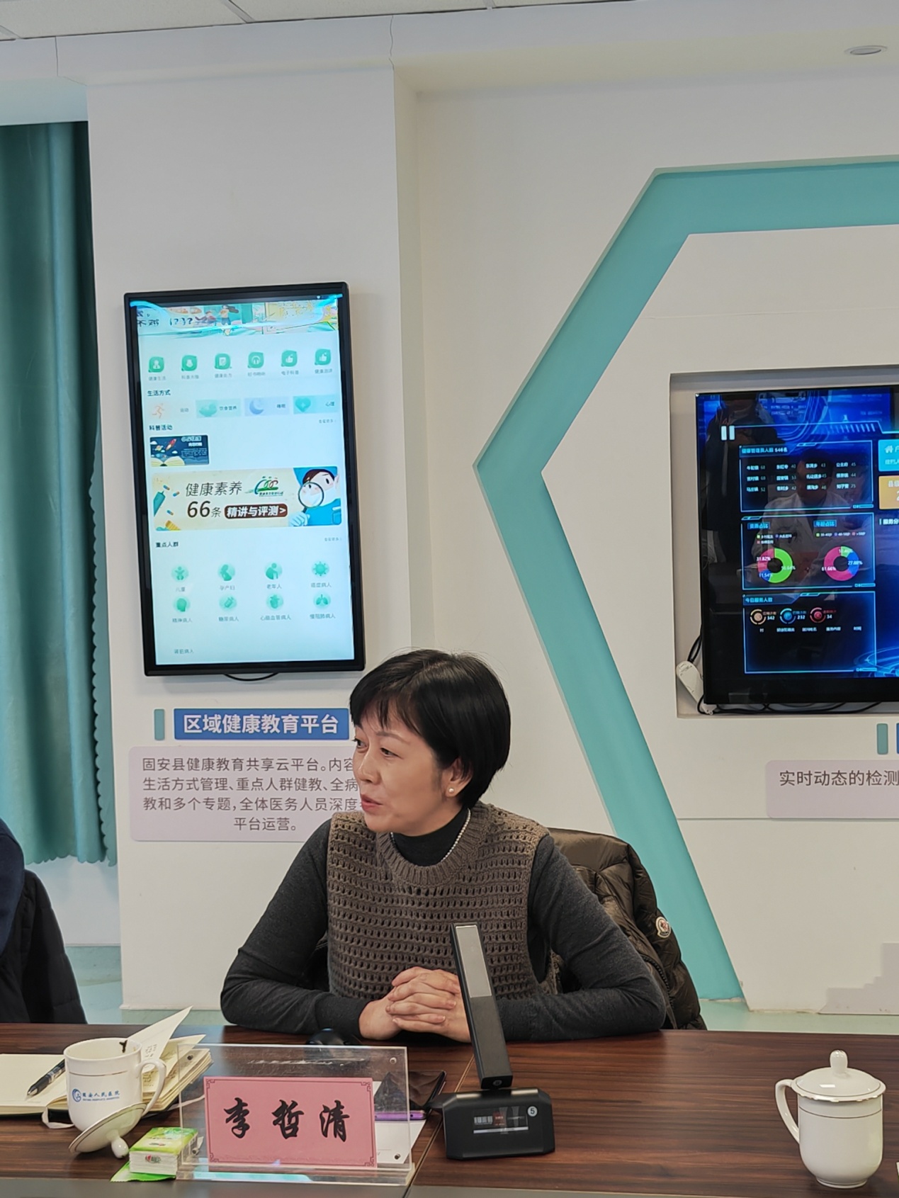会上,栾松副院长首先对石景山医院代表团及各位专家的到来表示热烈的欢迎和诚挚的感谢,她讲到固安总医院近年来,坚持“以人民健康为中心”的发展思想,全面落实医改重点工作任务,把医联体建设作为推进分级诊疗制度的重要抓手,整合县人民医院、县中医医院、14所乡镇卫生院及280所集体产权村卫生室,建成了固安县总医院牵头,按照县、乡、村三级公立(集体)医疗机构的人员、财务和业务划转总医院统一管理,实现全县公立医疗机构的统一管理,全县医疗资源共享,县乡一体、乡村一体的目标。
