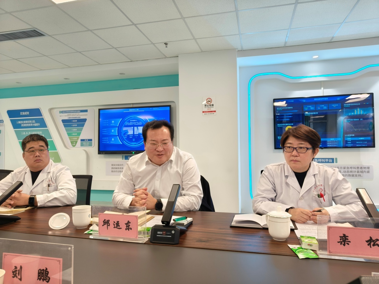 会后,在邱运东院长的带领下,石景山医院代表团及各位专家参观了固安总医院的信息化建设成果,全县医疗信息一张网,医疗业务互联,信息共享,县内紧急呼叫业务统一管理,医疗资源统一调度,优化资源分布,提升医疗资源使用效率。当地居民享受线上预约挂号,智慧导医,线上支付,报告查询,远程会诊,拓展互联网到家业务,实时统计医护到家数据,为百姓提供了方便、快捷的就医环境。