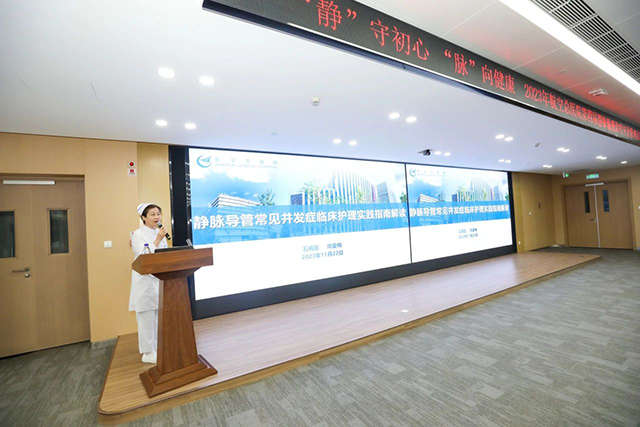 普外科、胸外科护士长周爱梅分享《静脉导管常见并发症临床护理实践指南解读(2022版)》,介绍了如何预防和处理静脉导管的各种常见并发症,包括血栓、感染、静脉炎等。她强调了护理人员在实际工作中对于并发症的识别、评估和干预能力的重要性,对于保障患者的健康和安全具有不可替代的作用。脑脊液科、头颈神外科护士长孙友珍分享了《静脉导管相关性感染的预防及处理》,讲述了通过集束化管理措施将导管相关血流感染降到最低。