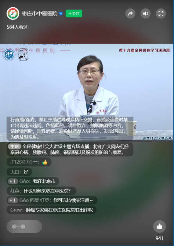为深入贯彻落实国家区域医疗中心建设要求,助力枣庄医院全面发展,东方医院宣传科以“手把手”带教的方式,从开通视频号的直播功能、利用现有平台进行推流直播、生成直播回放等基础操作到如何回答网友提问,介绍医院、专家具体情况,维护直播间秩序、氛围等直播策略问题给予多方面传授,指导枣庄医院宣传中心完善自媒体直播平台建设,并携手其于11月23日-24日开展同步直播。同时邀请到常驻枣庄医院的东方医院肿瘤科主任李泉旺教授为广大患者及网友们讲解如何用中西整合的方法,控制“癌中之王”——胰腺癌。本次直播获得了搜狐健康、中国经营报、新浪中医药与央广云听云医视频号的媒体支持,累计在线观众达到245万人次,在向广大群众介绍东方医院及枣庄医院的中医药特色理念,树立科学健康观念的同时弘扬了传统中医药文化。宣传科还将继续与枣庄医院宣传中心加强沟通交流,持续深化国家区域医疗中心建设。