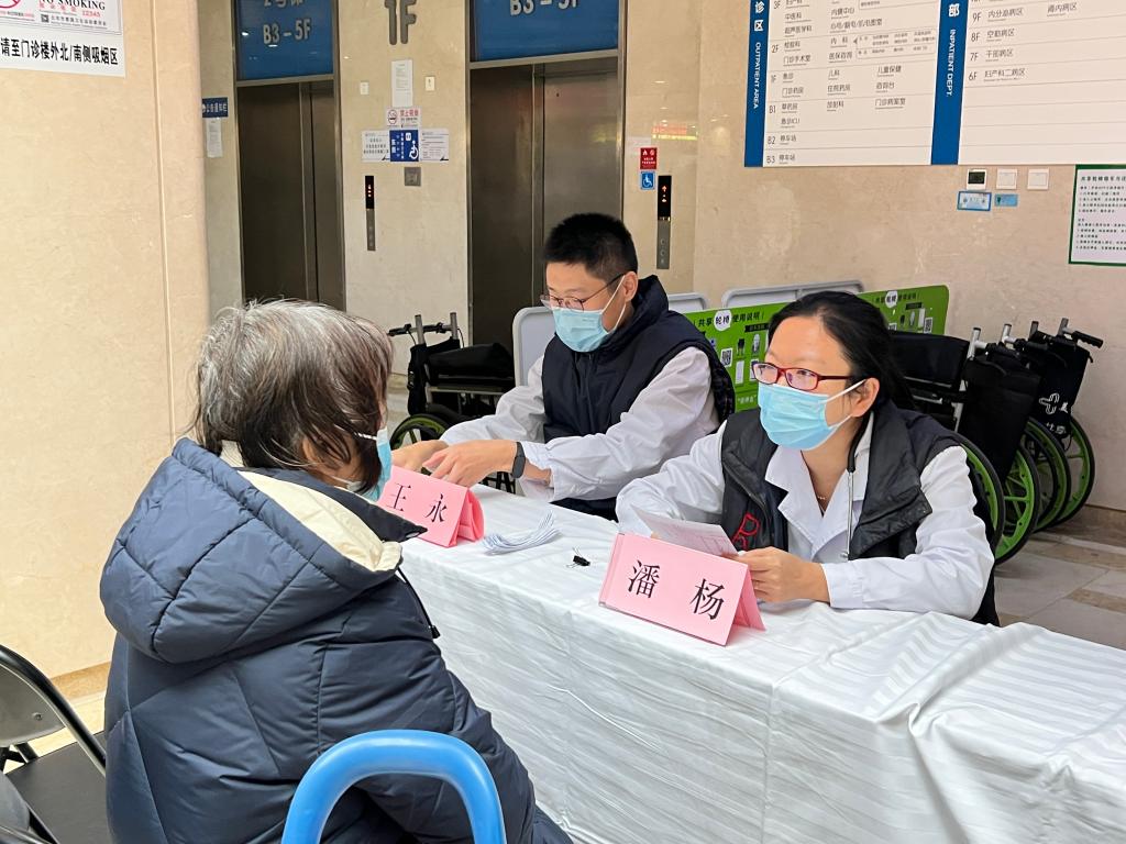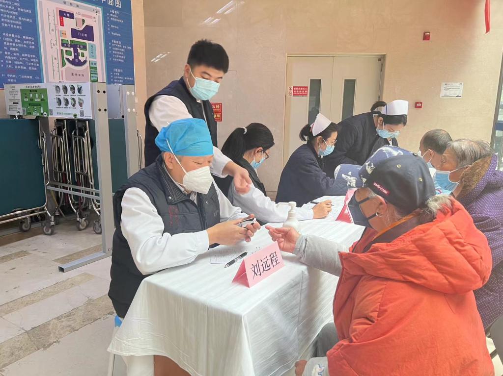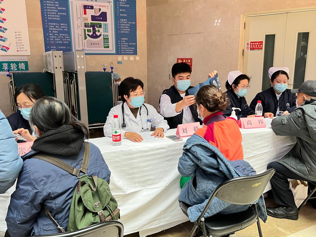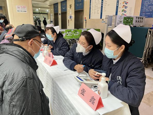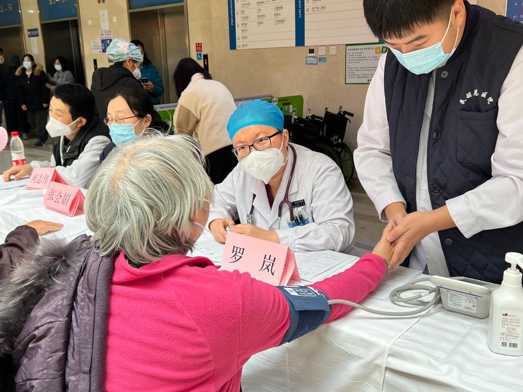 在义诊活动现场,前来咨询问诊的人络绎不绝。由呼吸内科主任带领医生,护士长带领护士组成的义诊团队,为前来问诊的群众答疑解惑,评估危险因素,做出健康指导,并为前来问诊的群众免费测量血压、血氧,提供健康指导。