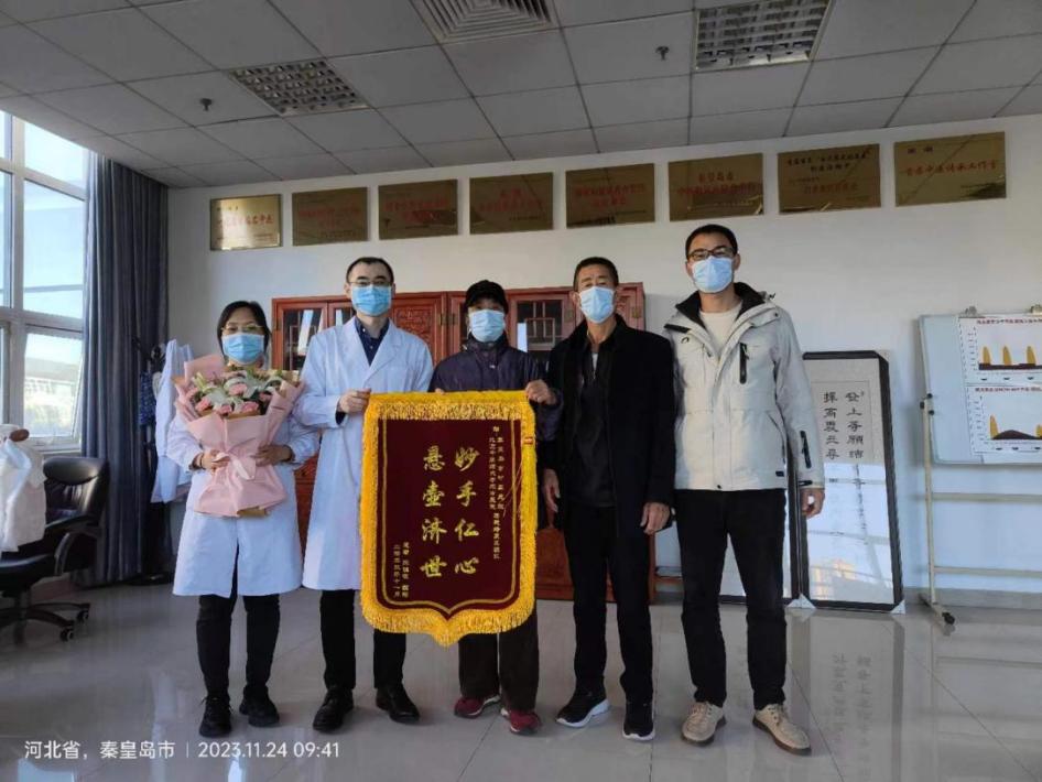 术后半个月,王女士从秦皇岛来到北京中医药大学东方医院闫天生教授门诊复查,结果显示各项指标均无异常,恢复良好;闫天生教授依旧十分耐心地叮嘱其术后康复的相关注意事项及治疗建议。王女士一家对整体诊疗过程非常满意,特意准备了锦旗、鲜花来表达对东方医院和胸外科闫天生教授医护团队的感谢,王女士的儿子表示:国家区域医疗中心的建设真是给百姓就医带来了极大的便利,感谢东方医院把先进技术带到秦皇岛中医医院,更感谢东方医院专家们的精心治疗与关怀!