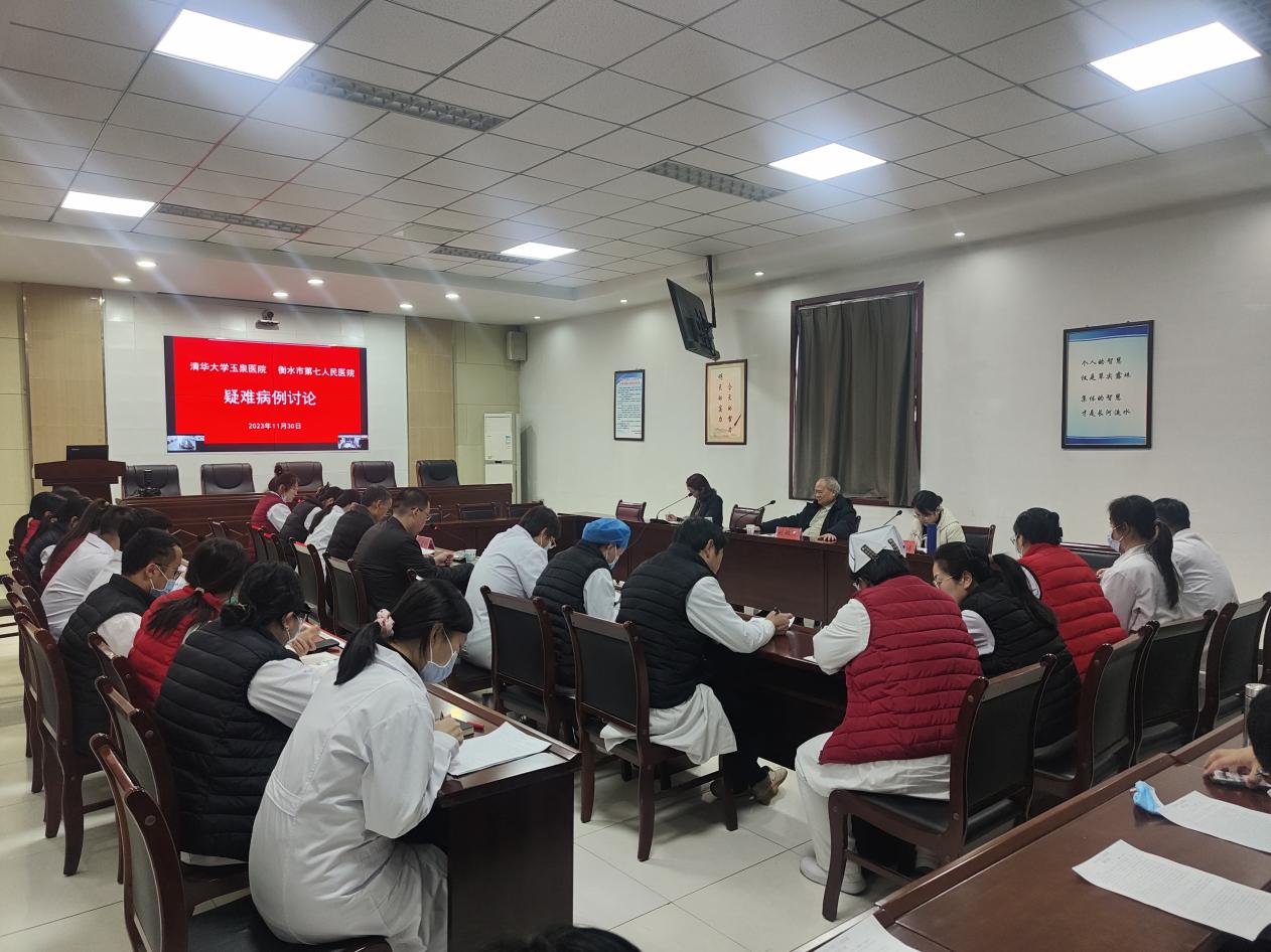 当天下午,刘破资教授一行还专程到衡水市第七人民医院会议室进行疑难病例讨论会,就讨论病例的诊断、治疗用药和预后等方面进行了答疑、解惑,并给与悉心指导。随后,针对如何提高医院科研水平进行了学术研讨,刘教授强调行为观察、临床量表、功能成像有机结合的心理疾病诊疗模式在临床的广泛应用,可同步推进科研与临床水平的提高,对改善目前精神心理疾病的诊疗现状和社会认同度发挥积极的作用。冯坤副主任医师就科研合作进行了交流和讨论。