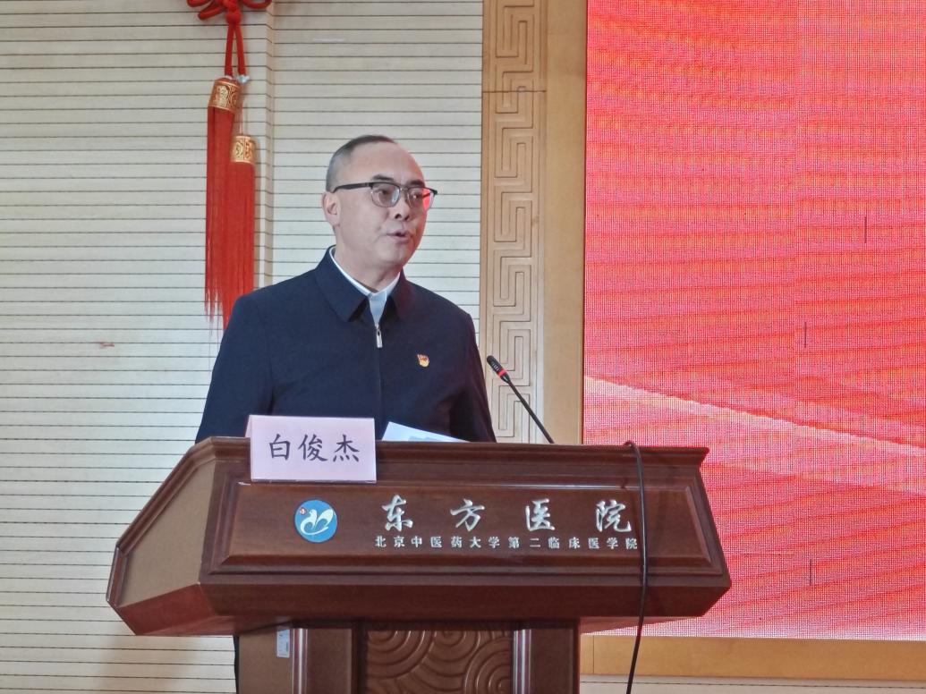 北京中医药大学东方医院党委副书记、副院长白俊杰致开幕辞,他指出,东方医院护理学科一直坚持中医特色引领,在北京市中医管理局的指导下,牵头制定行业内首个《中医护理门诊建设方案(试行)》专家共识,积极打造中西医结合护理学术传播体系,立项世界中医药学会联合会国际标准,中华中医药学会团体标准等,努力推进中医护理标准化。希望全国中医护理同仁以本次大会为契机,携手并进,推动中医护理学科发展,为人民群众健康做出更大的贡献。