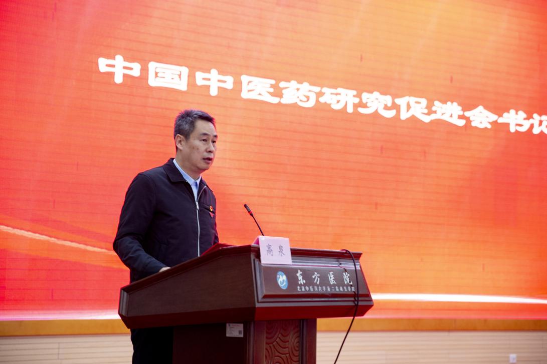 中国中医药研究促进会书记高泉致辞,他强调,当前中医药事业发展迎来了空前的发展机遇,中医护理人要抓住机遇,进一步明确中医护理学科的发展方向,立足于目前护理临床实践、人才培养、中医护理门诊的标准化建设、中医适宜技术等行业热点问题展开深入研究与合作交流,充分发挥中医护理优势,提升基层中医护理服务能力及服务社会能力,将标准引领与传承创新深度融合,不断开拓中医护理事业的新局面,助力健康中国建设。