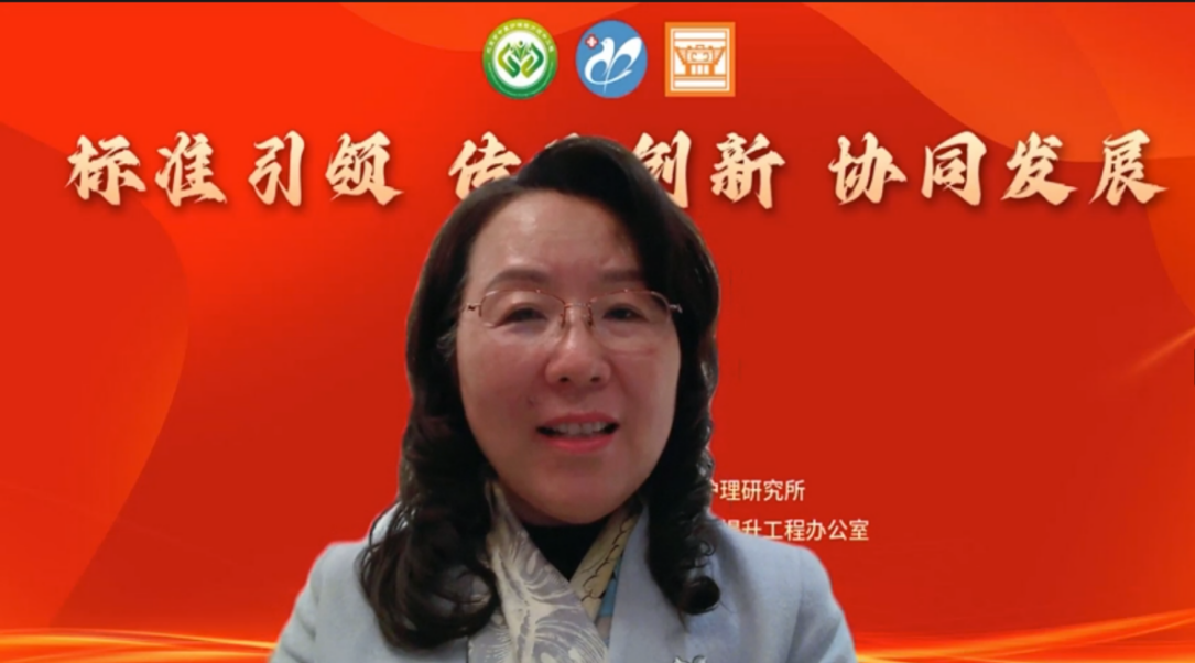 北京市中医管理局医政处调研员祝静致辞,她指出,党的十八大以来,国家高度重视中医药工作,北京市中医管理局积极落实国家政策,统筹规划、顶层设计,启动了一系列支持护理发展的项目,客观要求全面推进护理标准化工作,以提高中医护理标准化水平为核心,发挥标准化在中医护理发展中的基础性、战略性、全局性作用,未来要加大力度培养标准化人才、形成标准化方案、推动标准化国际输出等,不断满足人民群众多元化护理服务需求,为百姓健康护航。