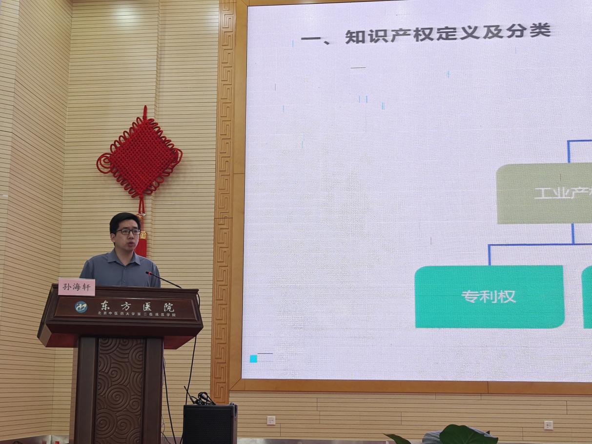 北京中医药知识产权保护服务中心办公室主任孙海轩以“护理工作中知识产权发掘与保护”为题进行专题讲座,阐述了知识产权的定义及分类,明确了个人发明与职务发明的区别,介绍了现行知识产权制度下可获得的六大权利以及针对护理行业的知识产权保护与转化内容,并从医院管理的角度阐述了发明成果保护与转化的管理流程。