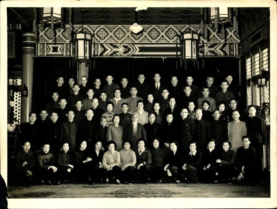 与周恩来总理(第4排中)合影,蒲辅周(2排中)、段胜如(5排左1)。