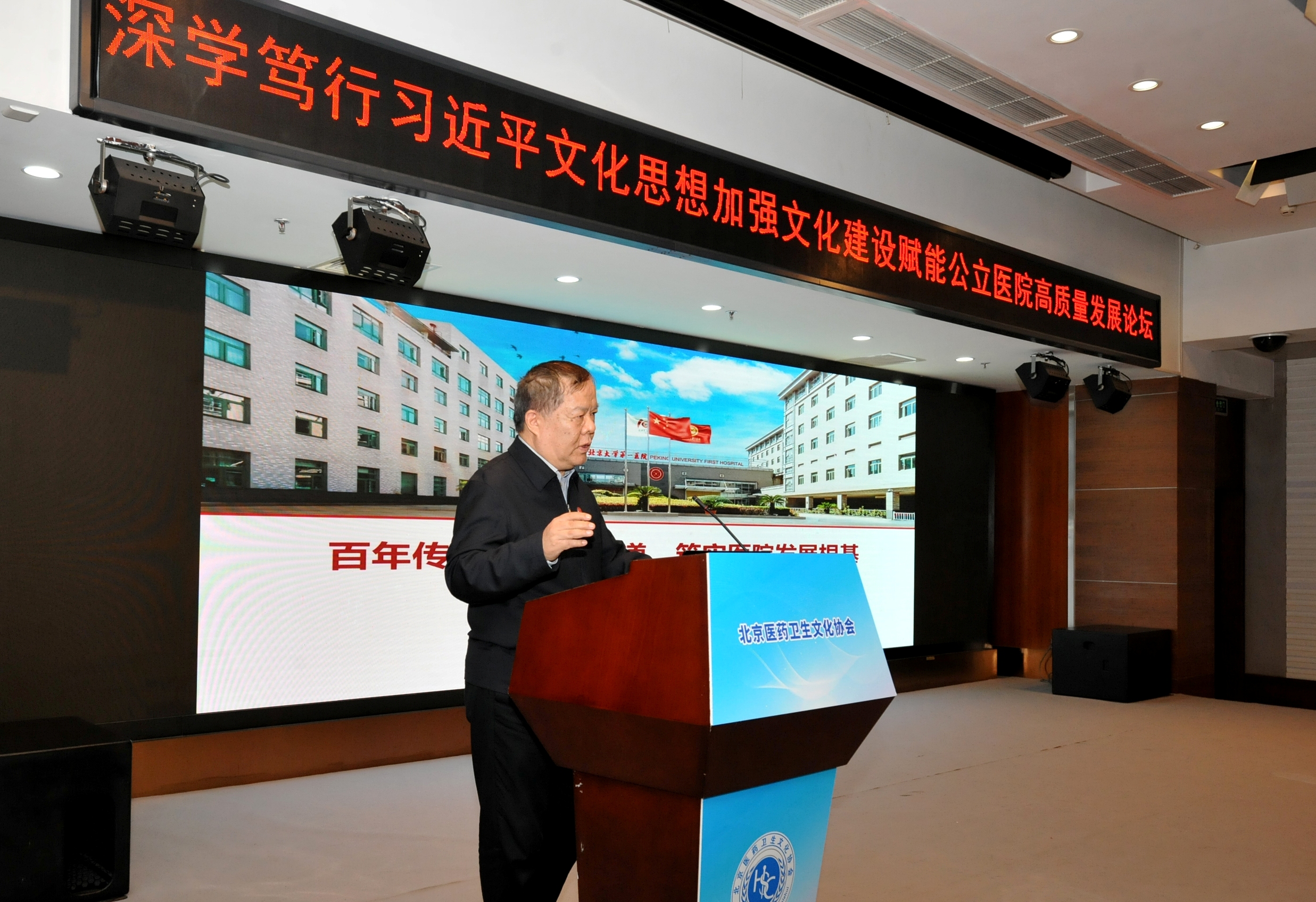 北京大学第一医院原党委书记、院长刘新民以《百年传承,厚德尚道,筑牢医院发展根基》为题作报告
