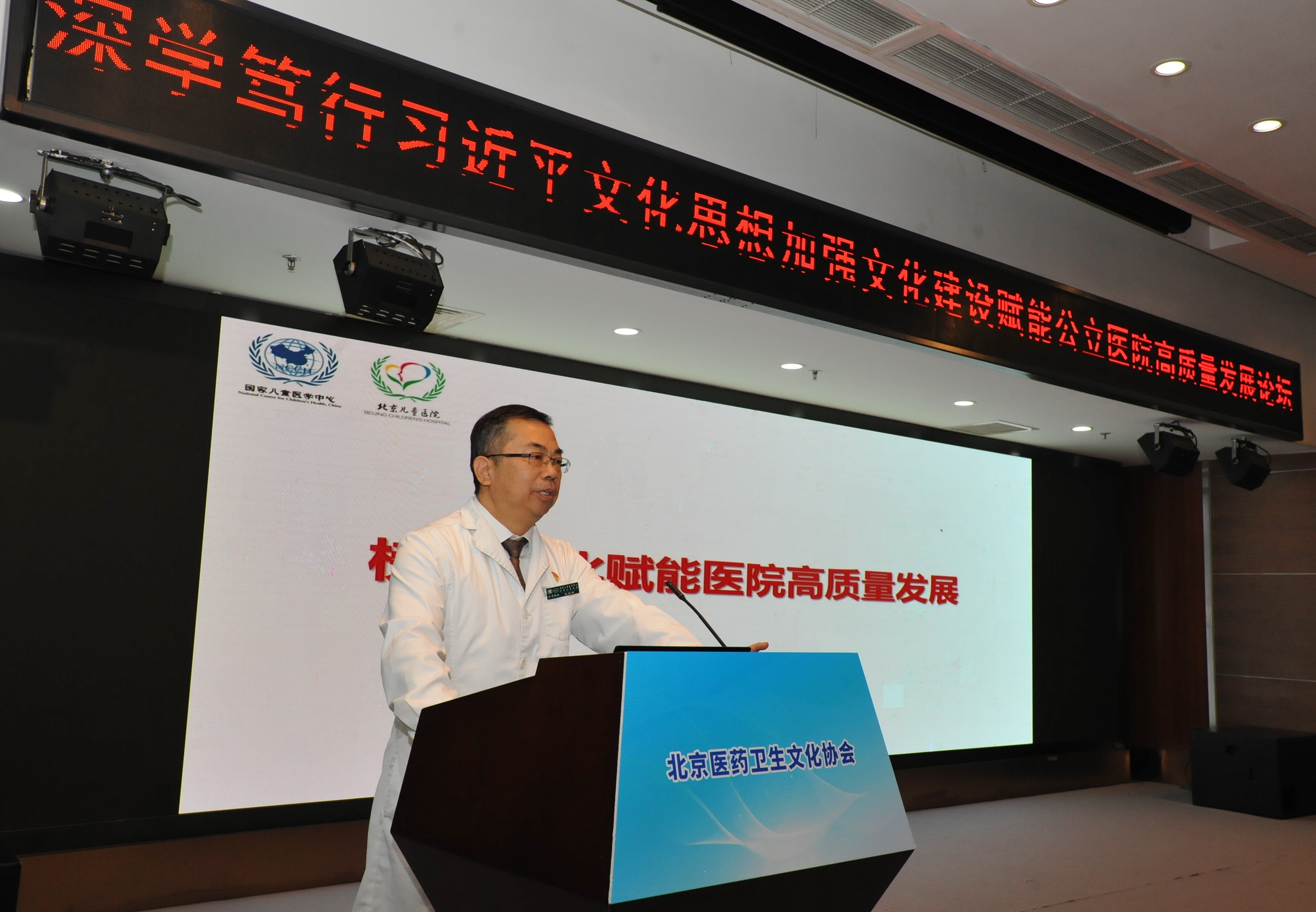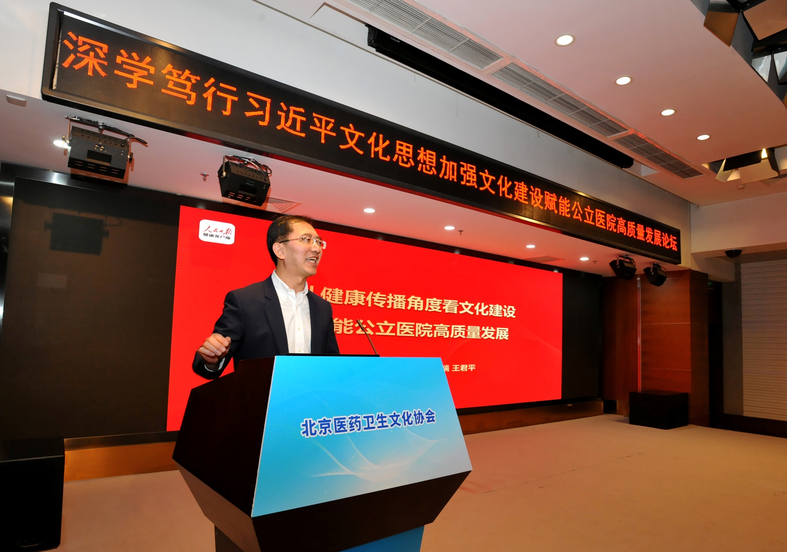 12月20日北京医药卫生文化协会主办的“深学笃行习近平文化思想 加强文化建设赋能公立医院高质量发展”论坛在国家儿童医学中心、北京儿童医院举行,国家卫生健康委体改司副司长薛海宁出席,并作“公立医院改革与高质量发展的形势和任务”主旨报告。北京大学第一医院原党委书记、院长刘新民,北京儿童医院党委书记张国君,分别结合所在医院文化建设情况,探讨了文化建设如何赋能医院高质量发展。原北京卫视副主任张丽,人民日报健康客户端、健康时报副总编王君平分别从资深医疗媒体人角度分享了健康传播如何为医院文化建设助力。