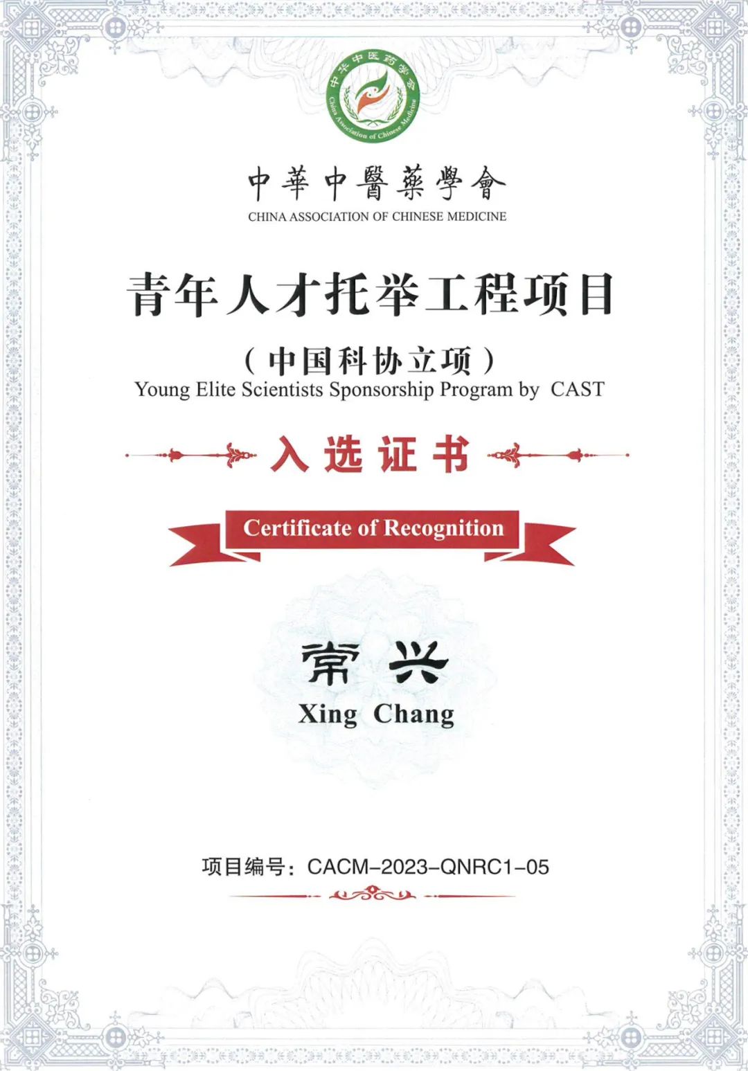 祝贺广安门医院青年医师常兴入选2023-2025年度中国科协青年人才托举工程项目