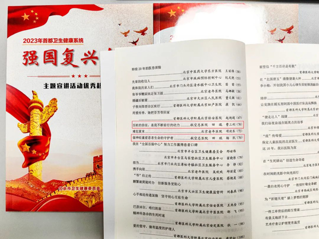 近日,航空总医院青年医生杨凯《做神经重症患者生命的守护者》和曹三利《百姓的信任,是我不断前行的动力》两例救治患者的感人故事,入选2023年首都卫生健康系统“强国复兴有我”主题宣讲活动优秀故事集。