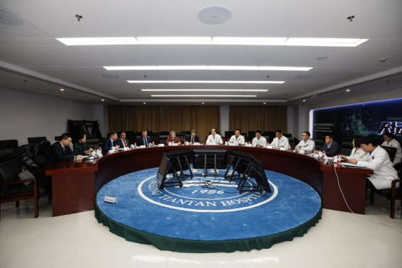 2023年12月20日上午,首都医科大学附属北京天坛医院接待了俄罗斯联邦卫生部部长一行来访。俄罗斯联邦卫生部部长一行由俄罗斯联邦卫生部部长、俄罗斯联邦卫生部部长助理、俄罗斯联邦卫生部国际合作与公共关系司司长、俄罗斯联邦驻华大使馆参赞、俄罗斯联邦驻华大使馆一等秘书组成。此次参访主要就我院远程医疗与AI人工智能医疗情况进行参观了解。