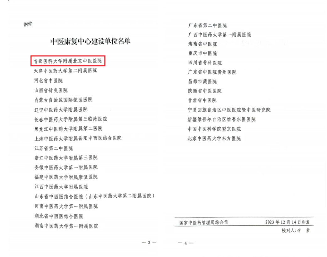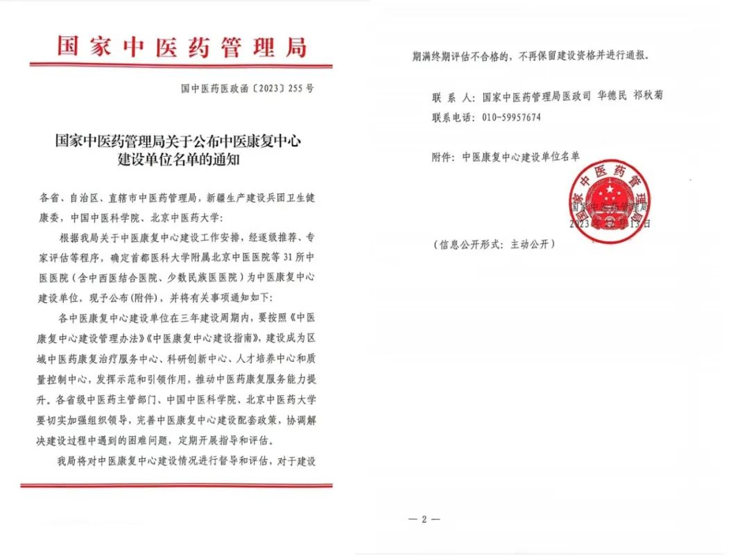 近日,国家中医药管理局下发中医康复中心建设单位名单的通知,“经逐级推荐,专家评估等程序,确定首都医科大学附属北京中医医院等31家中医医院为中医康复中心建设单位。”本次获批国家局中医康复中心建设单位,标志着我院针灸中心下设的康复科已晋升到国家队行列,将助力我院康复专科的快速发展。
