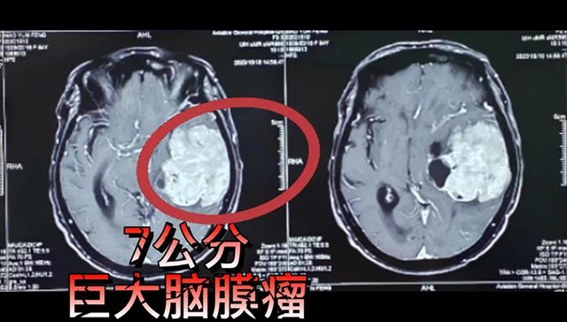 2023年5月,84岁的毛女士因头痛就诊于北京某医院急诊行头部CT结果提示左侧颞叶占位伴周围水肿。其后辗转于多家医院,完善头颅增强核磁结果提示“左颞巨大占位,脑膜瘤可能”。医生告诉毛女士:考虑暂无明显症状且84岁高龄,手术风险大,建议观察并定期复查。毛女士也因为头痛症状轻微并且没有其他不适的症状,便没有太在意。