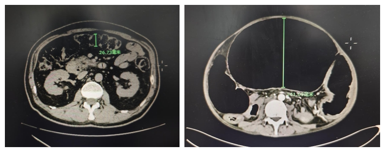 此位患者的治疗过程更是充满曲折,每次就医仅能使症状相对缓解,而后又迅速复发。多次求医未果后,最终患者选择了清华一附院普外科。来到我院就诊时,患者的腹腔已然涨大如怀胎十月的孕妇,腹腔内张力巨大,肚子仿佛随时就要“爆炸”,全身的营养状态更是差到了极点。