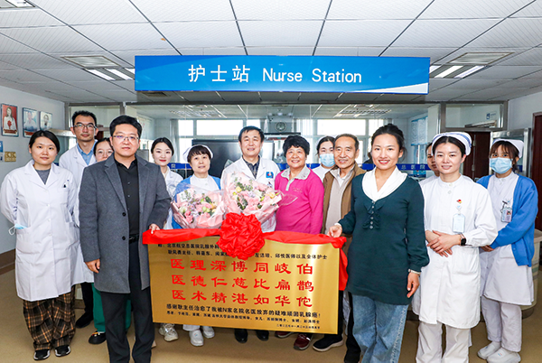 据悉,于女士女儿、女婿均为博士,为了母亲早日恢复健康四处奔波,付出很多艰辛与努力。看到于女士恢复得如此理想,一家人特意在2023年感恩节前夕为耿凤勇及团队送来“医理深博同岐伯,医德仁慈比扁鹊,医术精湛如华佗”牌匾和鲜花,表达感激之情和祝福,期待耿凤勇为更多乳腺患者带去健康。