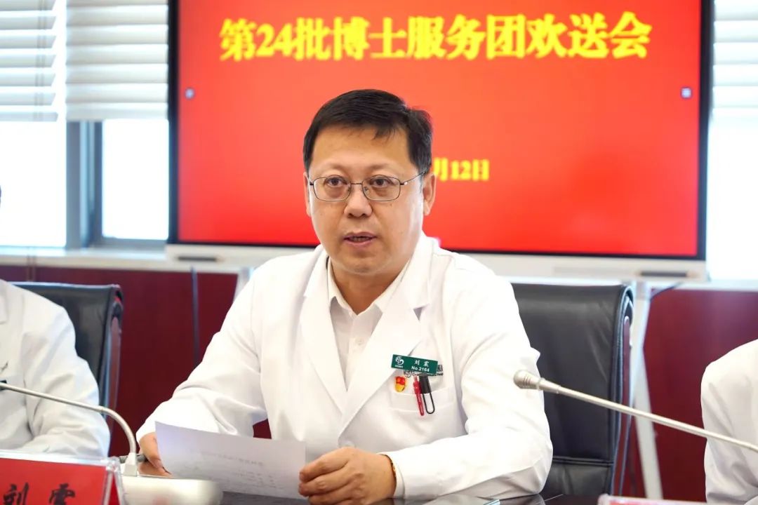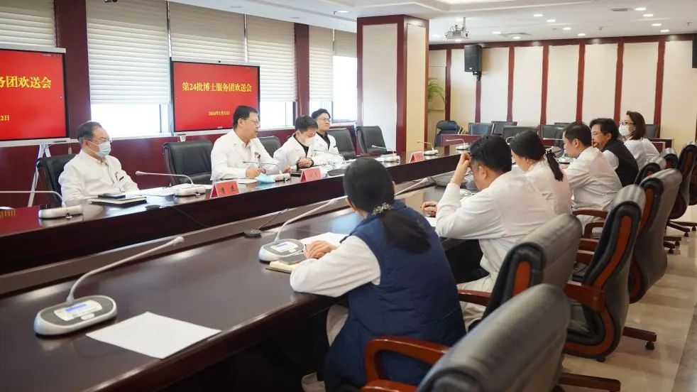 刘震院长在讲话中强调,博士服务团是贯彻落实国家战略、支持西部地区经济社会发展和培养锻炼青年人才的重要举措。一是要珍惜挂职服务中的思想淬炼和本领锤炼,提升综合管理水平;二是结合派驻地区实际需求,把广安门医院的专家资源、特色技术带入当地,做好两地交流服务;三是保重身体、克服困难,医院会切实做好后勤保障工作,全力支持两地医疗服务工作。