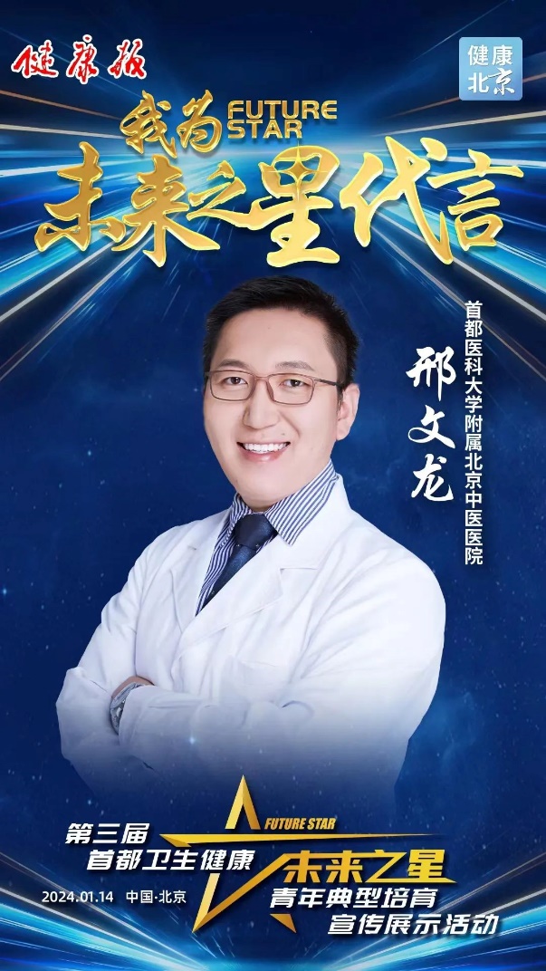 1月14日,由北京市卫生健康委指导,健康报社与“健康北京”政务新媒体共同主办的第三届首都卫生健康“未来之星”青年典型培育首轮宣传展示活动隆重举办,来自各区卫生健康委、各三级医院、各直属单位等推荐的64名“未来之星”青年典型培育宣传对象进行个人风采展示,首都医科大学附属北京中医医院心血管科副主任医师邢文龙荣获“逐梦新星”奖项。