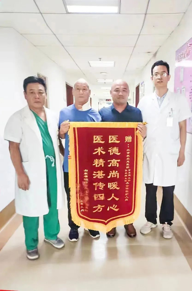 出院当天,患者及其家属送来锦旗,感谢金永健团队