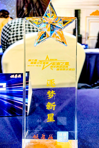 1月14日,在北京卫生健康委、健康报社联合举办的首都卫生健康系统第三届“未来之星”青年典型培育宣传展示活动中,航空总医院神经外二科医生王宁博士荣获“逐梦新星”奖。