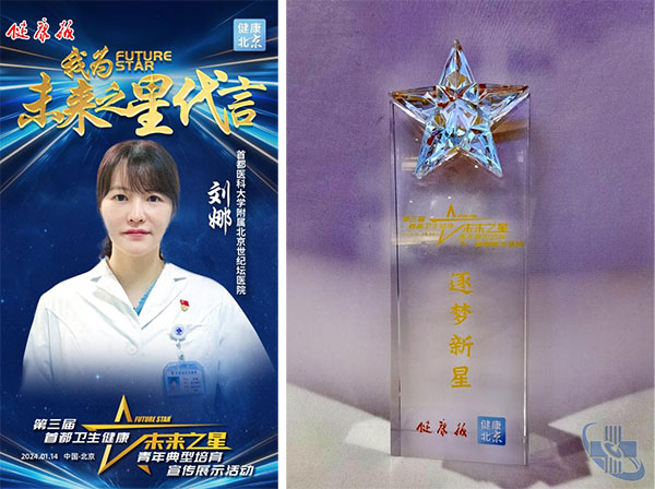 【世纪新闻】北京世纪坛医院刘娜荣获第三届首都卫生健康“未来之星”青年典型培育宣传活动“逐梦新星”奖