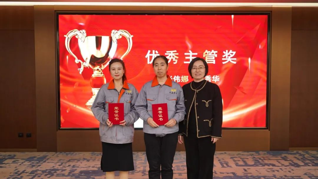 授予:王海燕等10人“优秀员工”荣誉称号;授予张伟娜、李秀华等2人“优秀主管”荣誉称号;授予仓储部“优秀团队”荣誉称号。