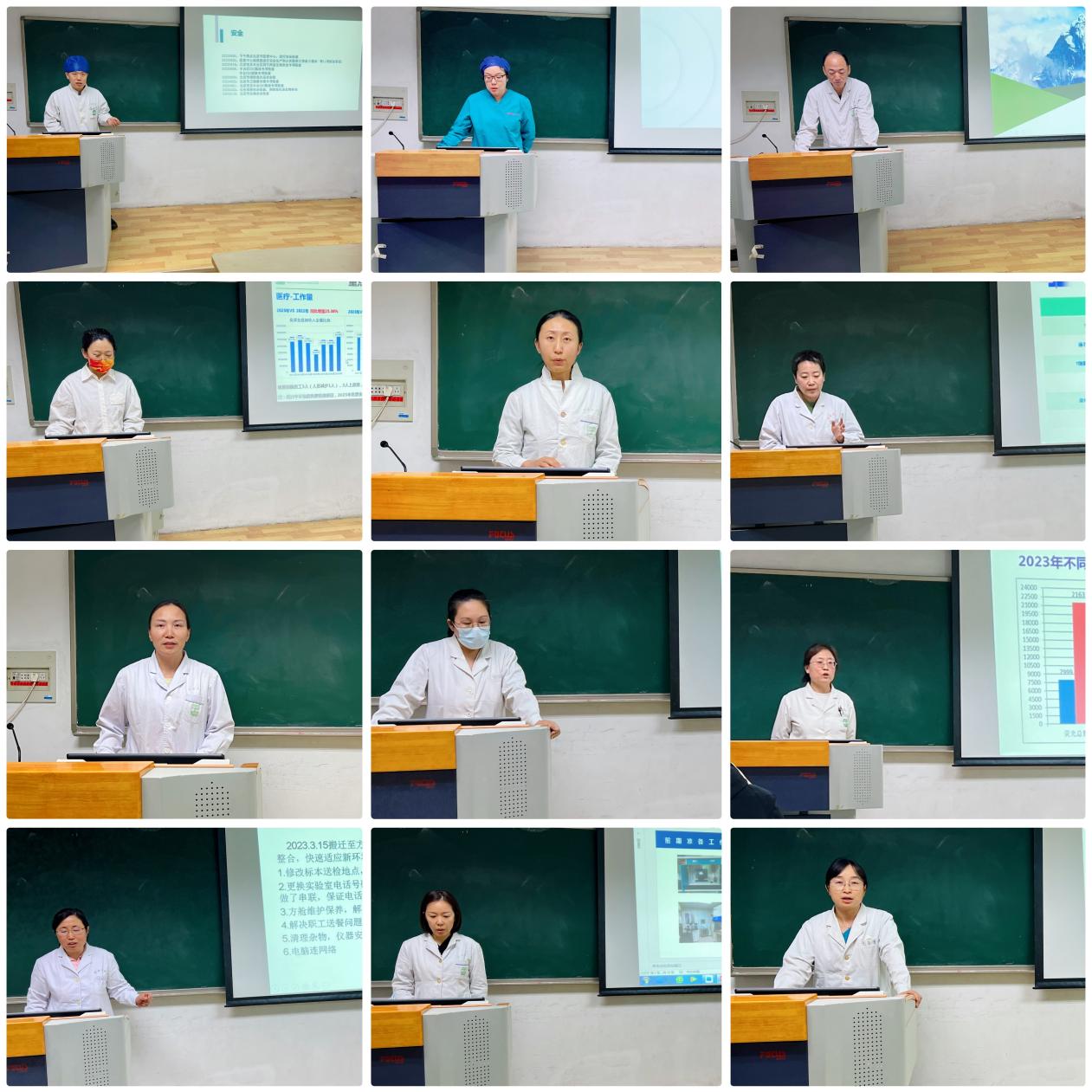 述职会议第二部分由科室ISO15189管理组各负责人分别就各自工作进行述职报告。质量管理组秘书党燕、安全管理组秘书陈铭、检验诊断组秘书代芳芳、技术管理组秘书刘宁、咨询服务组秘书李宇、综合组秘书袁星星、设备管理员孔繁军以及标本兼POCT管理员孙海青,对各自管理组的工作进行了全面且细致的阐述,并认真梳理了工作中存在的问题及改进思路,对2024年的工作进行了详细规划与部署。