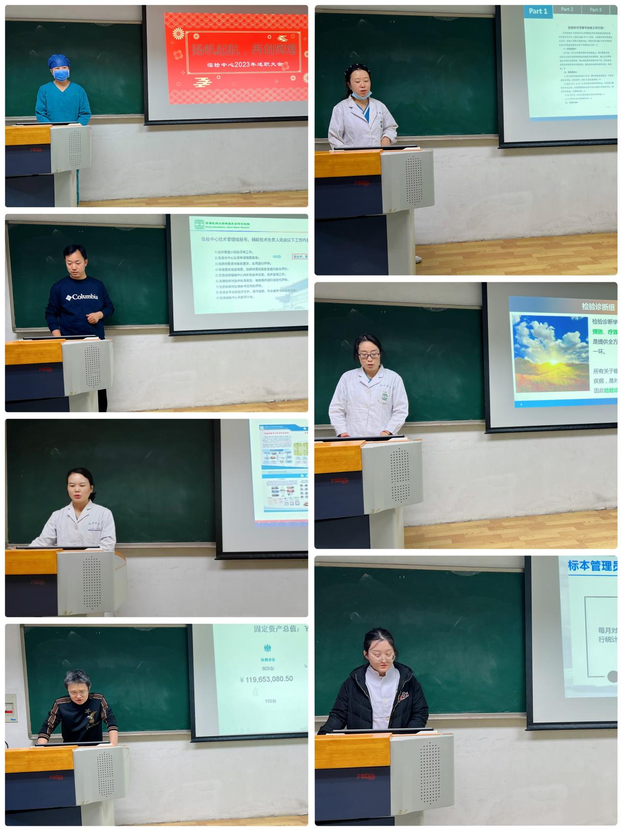 临检中心中心主任娄金丽发表讲话,她全面回顾了2023年度临检中心的工作历程,并对2024年的工作进行安排部署。娄主任指出,过去一年中,在医院的正确领导和大力支持下,临检中心全体职工团结一致,迎难而上,取得了显著成果。这些成果的取得,得益于每一位职工的辛勤努力和团队的高度协作,充分体现了临检中心全体员工的敬业精神和拼搏精神。娄主任还对临检中心未来发展提出了明确的方向。她表示,2024年全体职工要继续发扬团结协作、攻坚克难的精神,进一步提高服务质量,提升技术水平,为患者提供更加优质、高效的医疗服务。娄主任的讲话鼓舞了现场每一位员工的精神,明确了未来的发展方向。