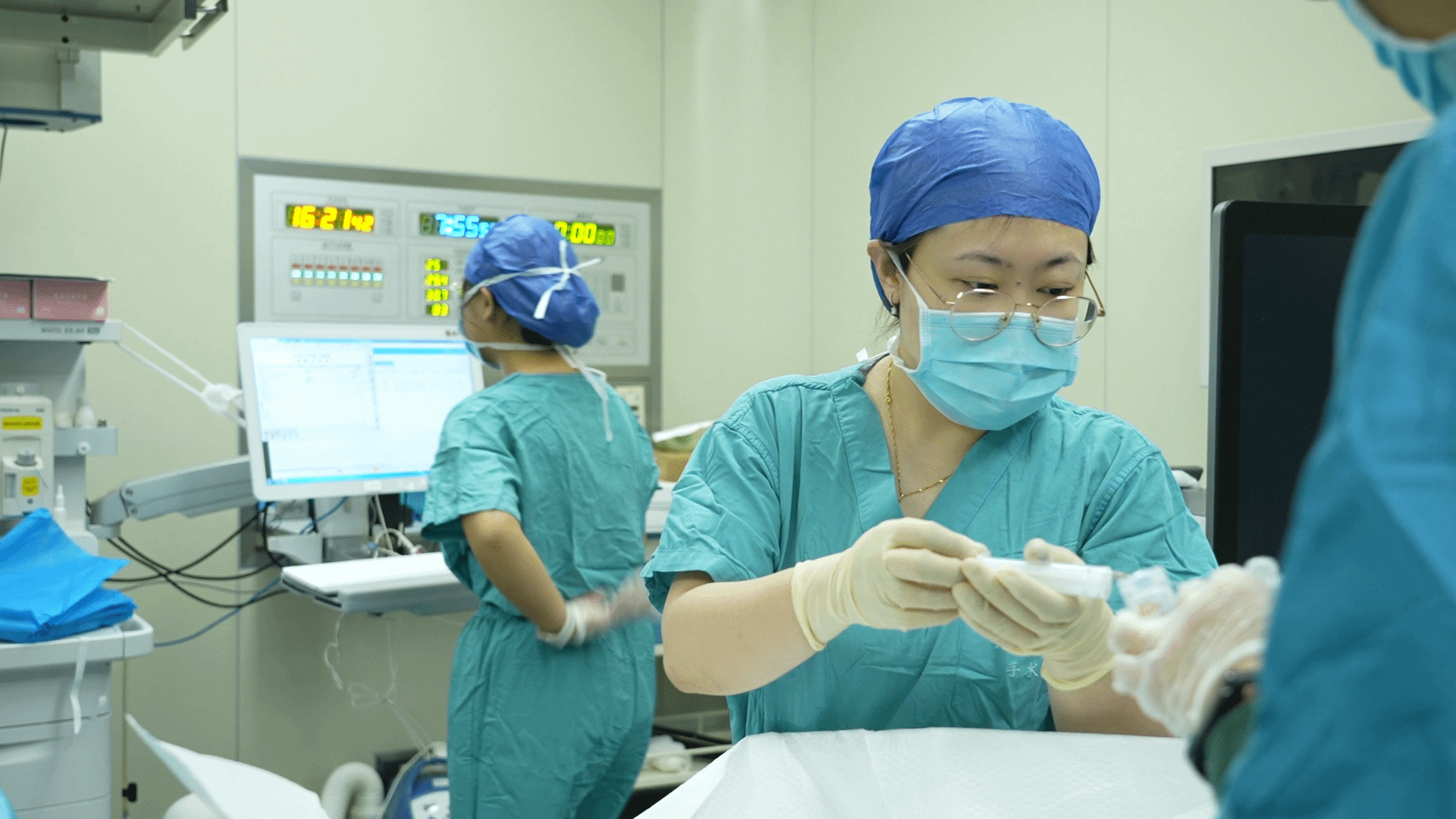 邓莹副主任医师(左二)为患者实施硬膜外麻醉