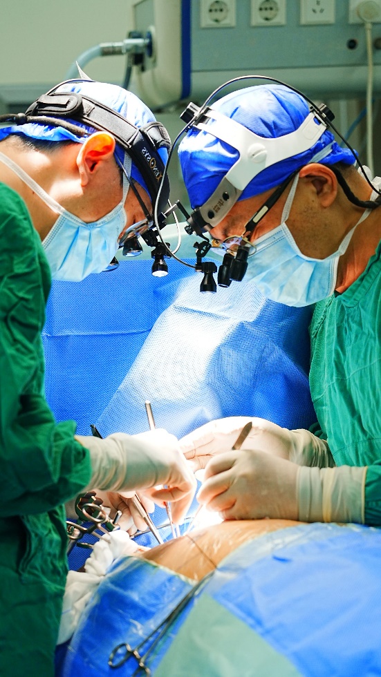 凌云鹏主任(右)与吴松主任医师为患者实施手术