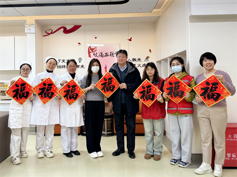 在西单献血屋,血液中心王勇主任对大学生志愿者和红十字会志愿者积极参加春节期间无偿献血志愿服务表达诚挚感谢,希望志愿者用爱心感召更多人,做献血宣传的践行者。随后血液中心王勇主任详细调研了西单献血小屋工作开展情况,对如何发挥西单献血屋的优势特色、提升献血采集量给出具体建议和可行方法。最后,血液中心王勇主任与工作人员共同为西单献血屋张贴“福”字,祝福全体工作人员和志愿者朋友龙年龘龘;祝福首都和全国无偿献血事业前程朤朤!