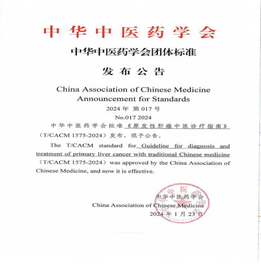 为推进中医药标准化建设,制定满足市场和创新需求的团体标准,加快中医药标准化发展进程,中华中医药学会标准化办公室组织了团体标准发布审查,专家对20项中医药领域团体标准的科学性、实用性进行论证,经过专家审查同意团体标准正式发布。其中,由我院李秀惠教授牵头制定的《原发性肝癌中医诊疗指南》于2024年1月23日由中华中医药学会正式发布!
