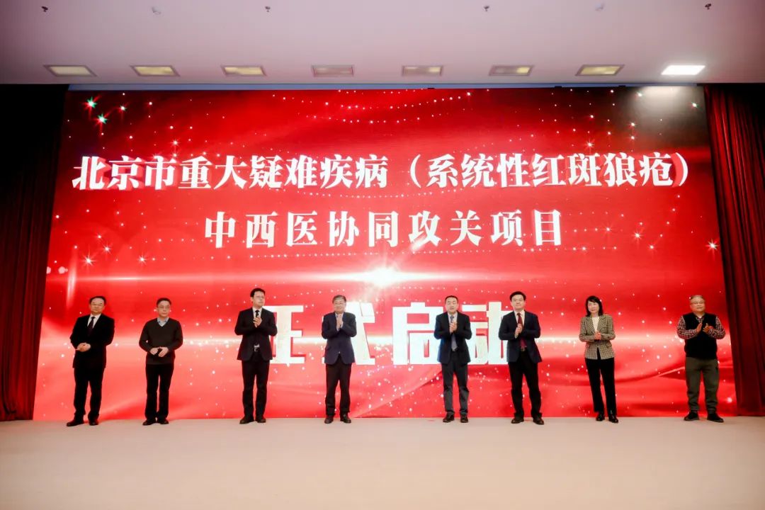 2月2日,由中国中医科学院广安门医院和中国医学科学院北京协和医院主办,首都中西医结合风湿免疫病研究所承办的“首都中西医协同诊治系统性红斑狼疮发展论坛暨北京市重大疑难疾病中西医协同攻关项目启动仪式”在我院学术报告厅召开。北京市中医管理局局长屠志涛、中国医学科学院北京协和医院副院长彭斌,我院院长刘震、副院长严华国,中华医学会风湿病学分会主任委员、中国医学科学院北京协和医院风湿免疫科主任医师赵岩,首都中西医结合风湿免疫病研究所所长曾小峰、姜泉等出席会议。启动会由我院副院长李杰主持。