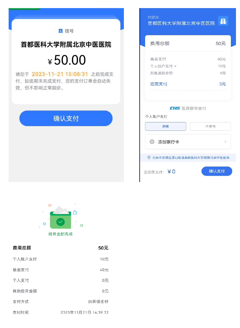 1.医院小程序第一次使用医保支付时,会提示北京医保服务平台需要进行身份信息验证,进行实名信息验证授权,并同意授权后,再进行医保支付。
